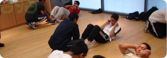 A crucial part of the course was to provide a health and fitness programme to improve the student’s health and health awareness and a ‘healthy body, healthy mind’ ethos was promoted. Each session was for 3 hours which comprised of approximately 2 hours Academic Tutoring and a 1 hour Health & Fitness programme. Boys and girls were taught separately.
